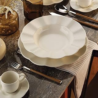 12 adet servis tabağı 12 adet yemek tabağı 12 adet tatlı tabağı 12 adet çorba kasesi 1 adet büyük kayık tabak 2 adet küçük kayık tabak 1 adet çorbalık 1 adet çorbalık kapağı 2 parça tuzluk 2 parça biberlik 1 adet. Kütahya porselen fulya 83 parça. 83 parçadan oluşan fileli yemek takımı; 12 adet servis tabağı, 12 adet yemek tabağı; 1 adet 28 cm kayık tabak.